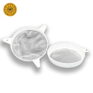 Great first strainer, food grade plastic and nylon, sits nicely in a 30lb bucket.